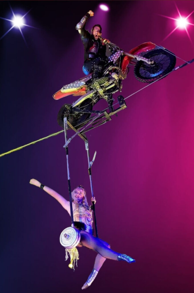 Auch die Artistik mit Ringtrapez hoch unter der Cirkuskuppel wird ein besonderer Hingucker ebenso Hula-Hoop mit brasilianischem Temperament und die Diabolo-Jonglage mit einem jungen Künstler aus der „Goldenen Stadt“ Prag. Das Programm bietet noch weitere viele Überraschungen aber die spektakuläre Motorradfahrt auf dem Hochseil muss noch unbedingt erwähnt werden.