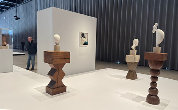 Neben Hauptwerken wie „Schlummernde Muse“, „Der Kuss“, „Vogel im Raum“ oder die „Unendliche Säule“ zeigt die Ausstellung erstmals außerhalb von Paris eine Teilrekonstruktion des berühmten Ateliers von Brancusi. Das Ensemble, das der Künstler 1957 dem französischen Staat vermacht hatte und heute zum Centre Pompidou gehört, gilt als Schlüssel zum Verständnis seines Werkes, als Laboratorium der Form und unmittelbares Zeugnis seines Schaffensprozesses.