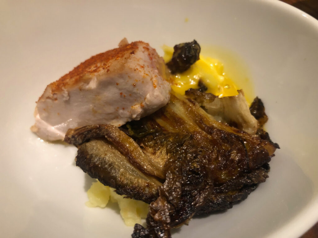 Gegrillter Thunfisch, Salzzitrone, Geschmorte Baby-Römer, Safran