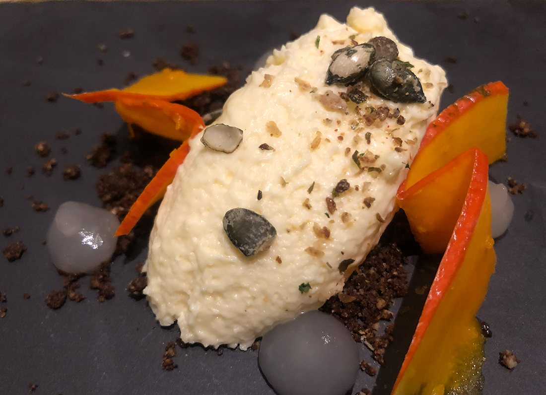 Cheesecake Creme, Himbeere, Butterkekse, Basilikum und Weiße Schokolade, Hokkaido Kürbis, Tonkabohne, Ingwer